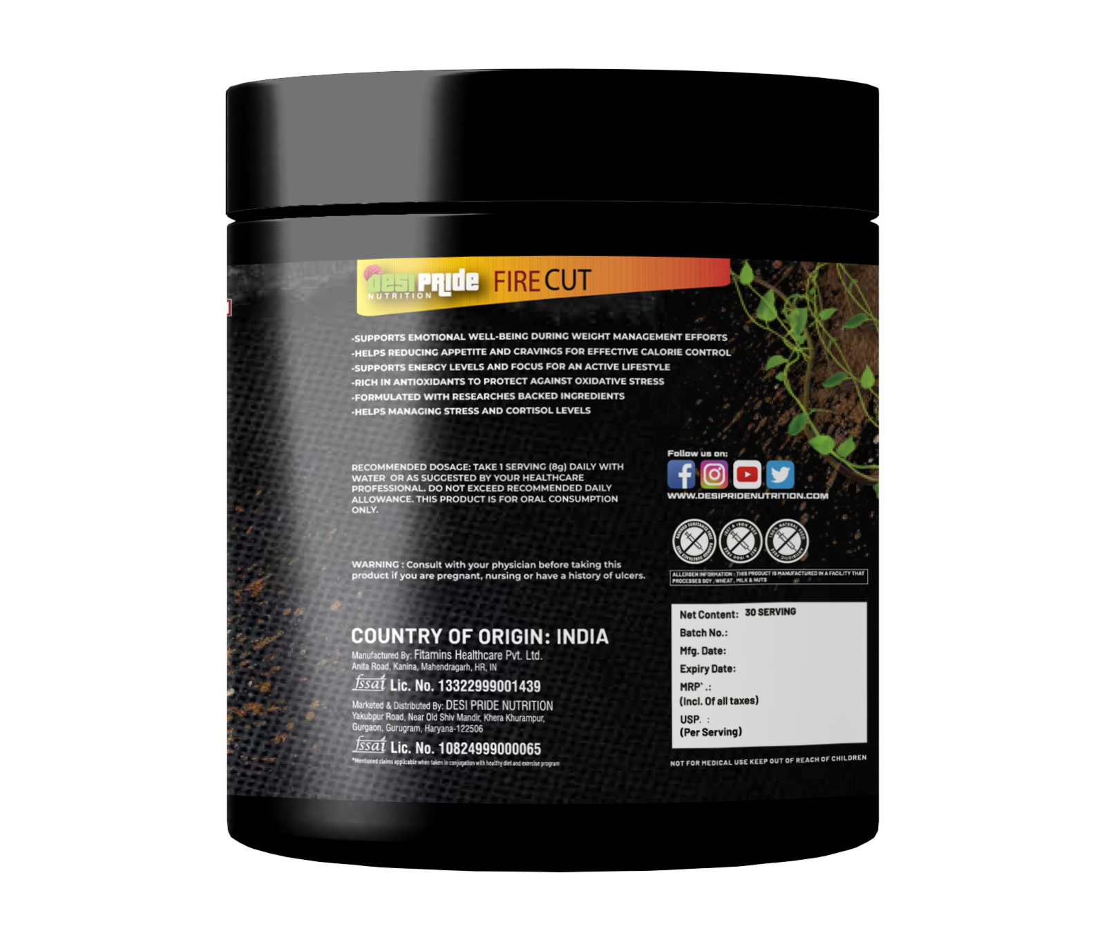 Fire Cut Fat Burner 30 Serving (Litchi Flavour) Desi Pride Nutrition