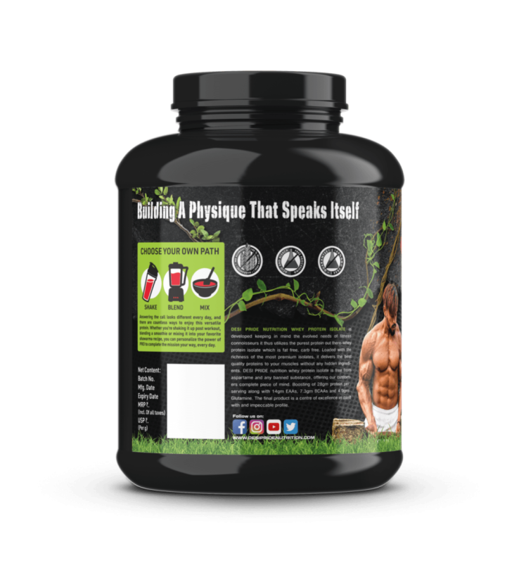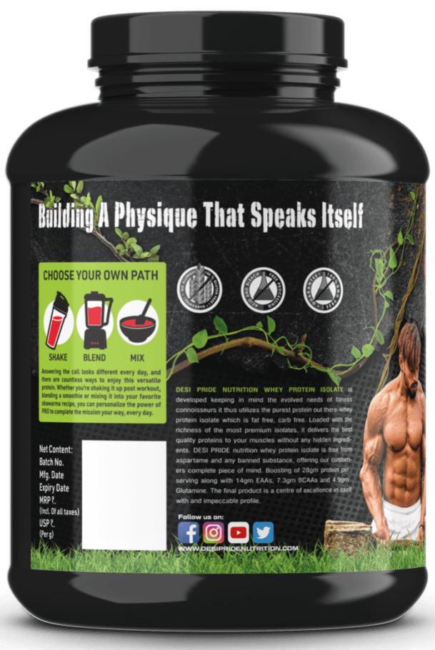 DESI PRIDE NUTRITION WHEY PROTEIN ISOLATE is developed keeping in mind the evolved needs of fitness connoisseurs it thus utilizes the purest protein out there-whey protein isolate which is fat free, carb free.