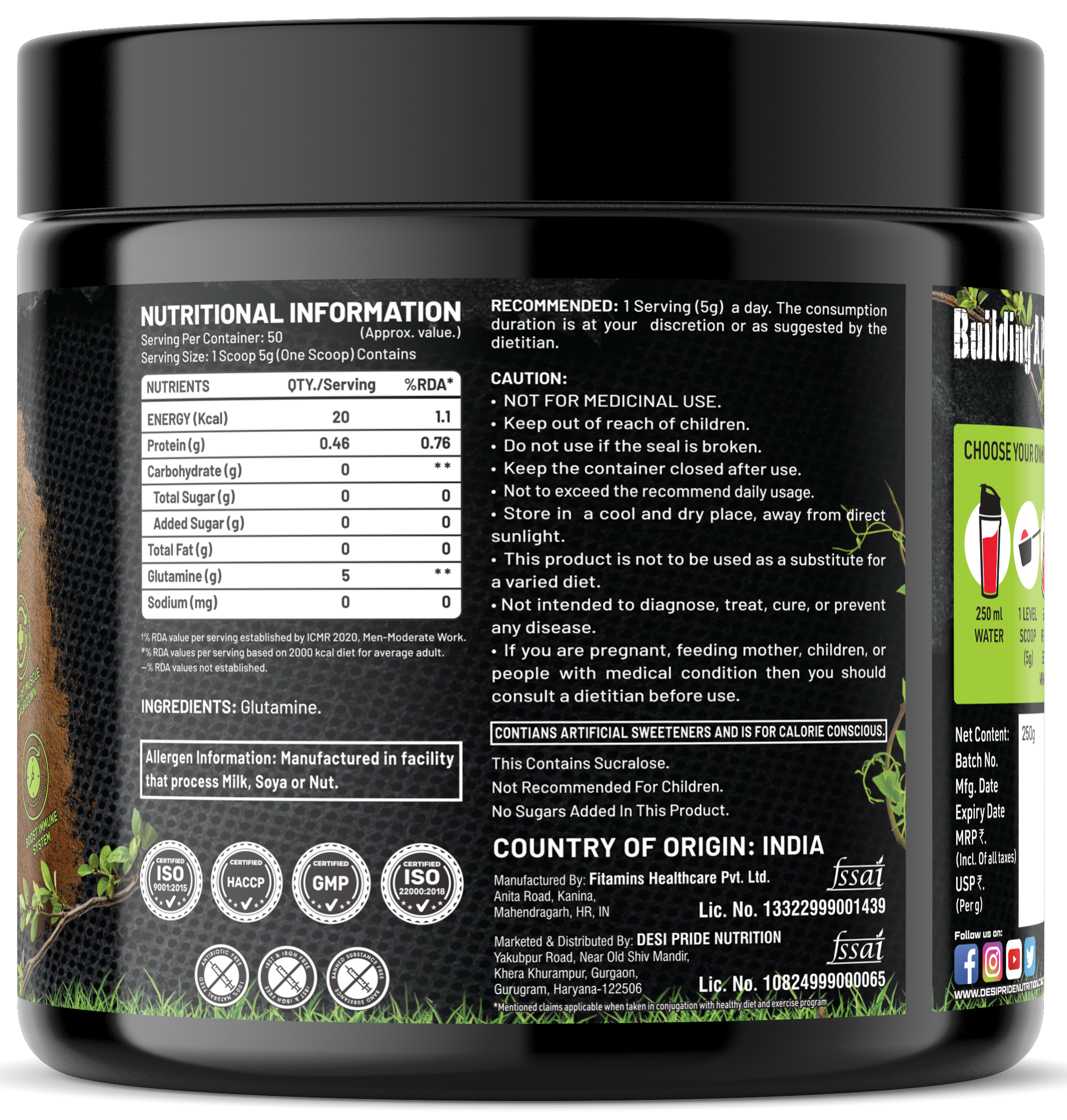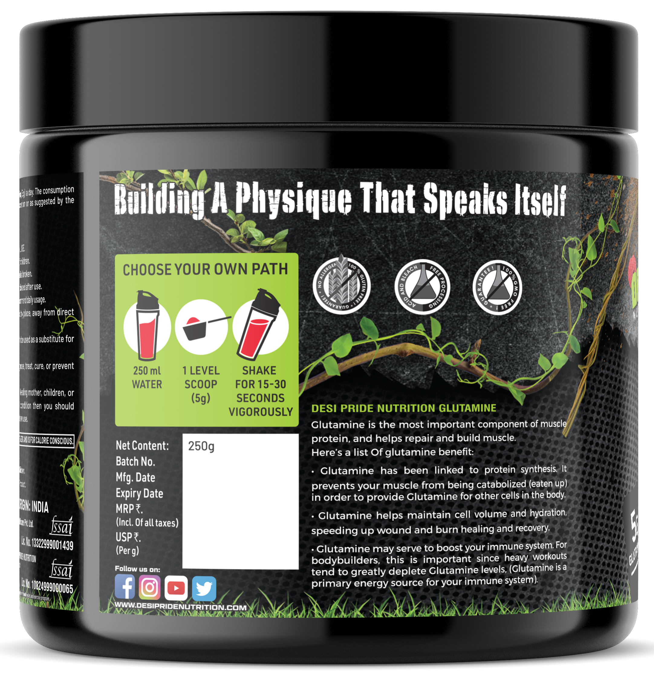 DESI PRIDE NUTRITION Glutamine is the most important component of muscle protein, and helps repair and build muscle.