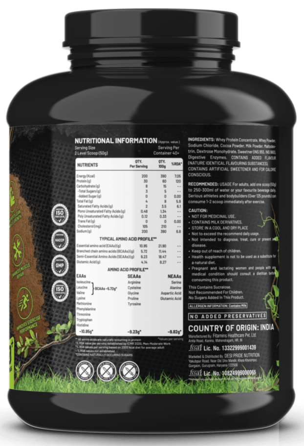 DESI PRIDE is a Low temperature Ultra Filtered Whey Protein which remains completely undenatured. DESI PRIDE Whey Protein have higher level of protein and lower levels of Fats and Carbohydrates.